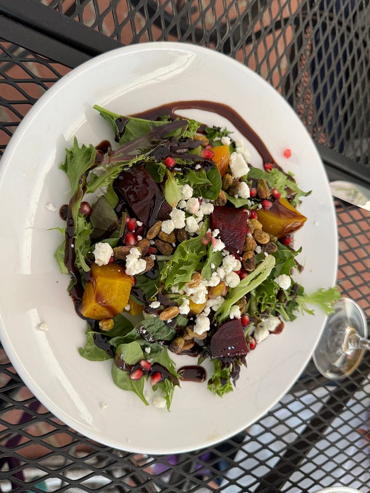 Afterward, we grabbed a table in the Inn’s courtyard and got to sample some mouth-watering new offerings, which include appetizers such as esquites (traditional Mexican corn salad) and braised beef, a beet salad, and new entrees like pork shoulder and chicken paillard. (We did not try the paillard, however. Another time, another time.)